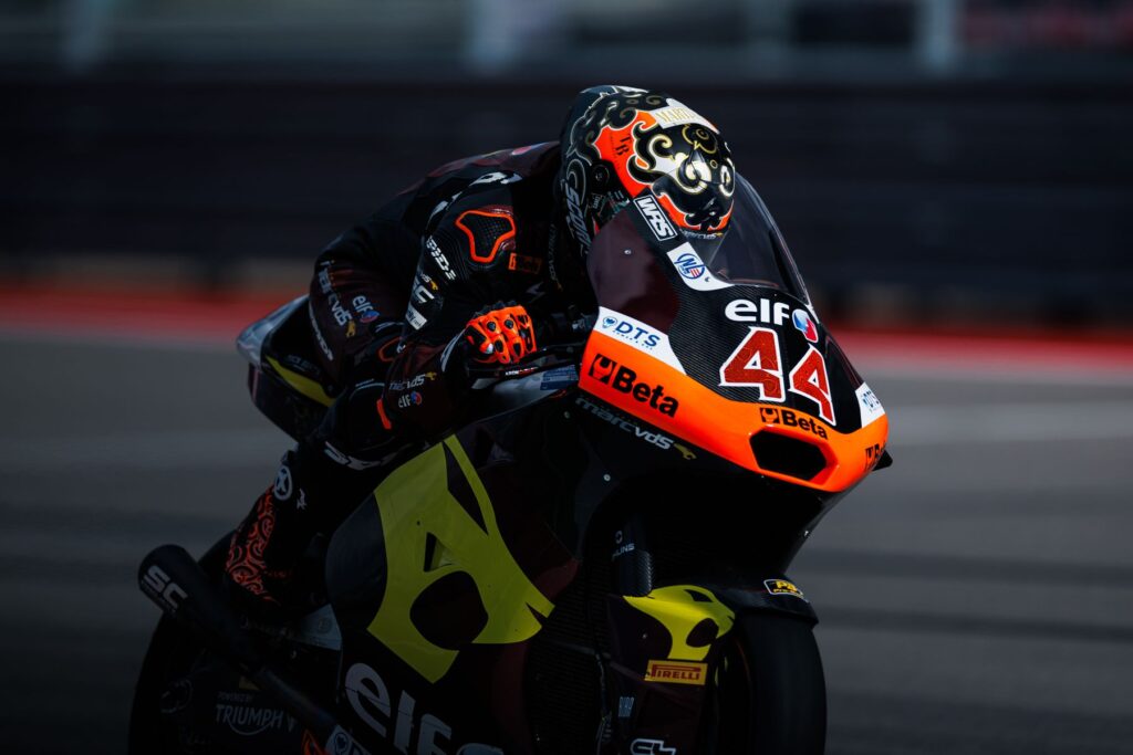 Esta mañana, a las 9:50 hora de Austin –15:50 hora peninsular española– se ha disputado la FP1, en la que nuestro piloto ha terminado duodécimo; esta sesión se ha disputado con sol pero con paso de nubes altas, 23ºC de temperatura ambiente, 29ºC sobre el asfalto, viento de unos 7-8 km/h y humedad relativa de entre 64%. Iniciada la sesión, Arón ha salido casi de inmediato para aprovechar al máximo los 40’ de la misma, en su segunda vuelta se ha situado quinto, su tiempo 2’10”168 aunque rápidamente ha perdido tres posiciones; pero en su vuelta 3 se ha situado segundo tras mejorar su registro, ha marcado 2’08”788 que le ha dejado a 690 milésimas del mejor registro en ese momento. En la vuelta 4 ha marcado 2’08”377, y tras perder posiciones, ha vuelto a situarse cuarto a 663 milésimas, pero varios pilotos han mejorado y ha descendido hasta la séptima posición provisional a 782 milésimas. En la vuelta 6 se ha ido al suelo en la curva 1, por suerte sin consecuencias físicas y con 26’ aún para la conclusión de la sesión.