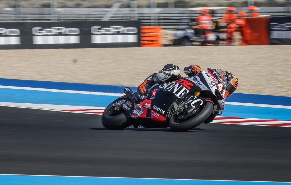 Esta tarde, en el definitivo qualifying –la Q2–, que se ha disputado con cielo cubierto, 23ºC en ambiente, 34ºC sobre el asfalto, humedad relativa del 37% y viento de 12-14 km/h, Arón se ha mantenido en box poco más de 40” antes de salir a pista; en su segunda vuelta lanzada se ha situado cuarto con un tiempo de 1’41”024, tras lo que Arón ha hecho su parada tras dar cuatro vueltas y a 7’20” del final siendo, quinto a 644 milésimas.