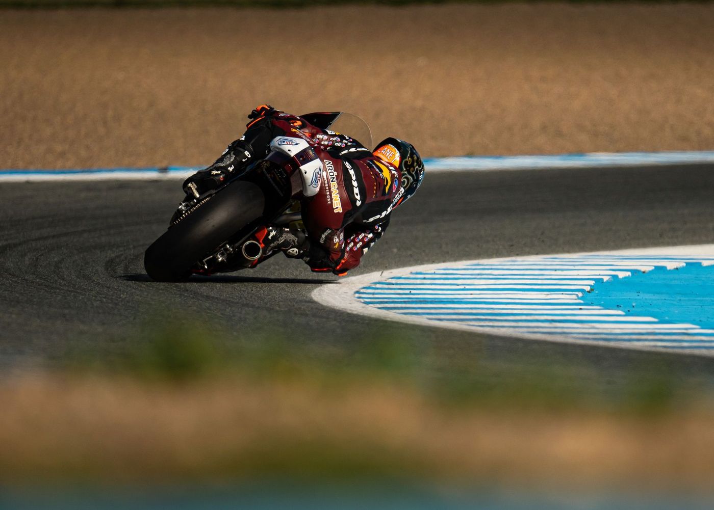 Esta mañana –hora tailandesa, madrugada hora peninsular española– en la FP1, Arón ha terminado muy retrasado y primera caída de la temporada, Arón se ha ido al suelo en la curva 1 apenas transcurridos unos 12’; esta primera sesión del año la ha concluido vigésimo segundo con una mejor vuelta –la última que ha dado– de 1’36”202 que le ha dejado a +1”054, la pasada temporada rodó en esta sesión en 1’35”521 y terminó la FP1 noveno a 930 milésimas. Con la caída, sin consecuencias físicas aparentes, Arón sólo ha podido dar diez vueltas, repartidas en dos tandas, una primera de siete vueltas y caída en el inicio de la octava, en ella ha marcado 1’36”978, y en la segunda, tras tener que reparar la moto, sólo ha dado tres vueltas, estableciendo su mejor tiempo en la última de ellas, la décima del total. En los tiempos por sectores, 27º en T1, 22º en el T2, 10º en el T3 y 24º en el T4. Esta primera FP1 del año se ha disputado con cielo despejado, 30ºC en ambiente, 37ºC sobre el asfalto y humedad relativa alrededor del 65%.